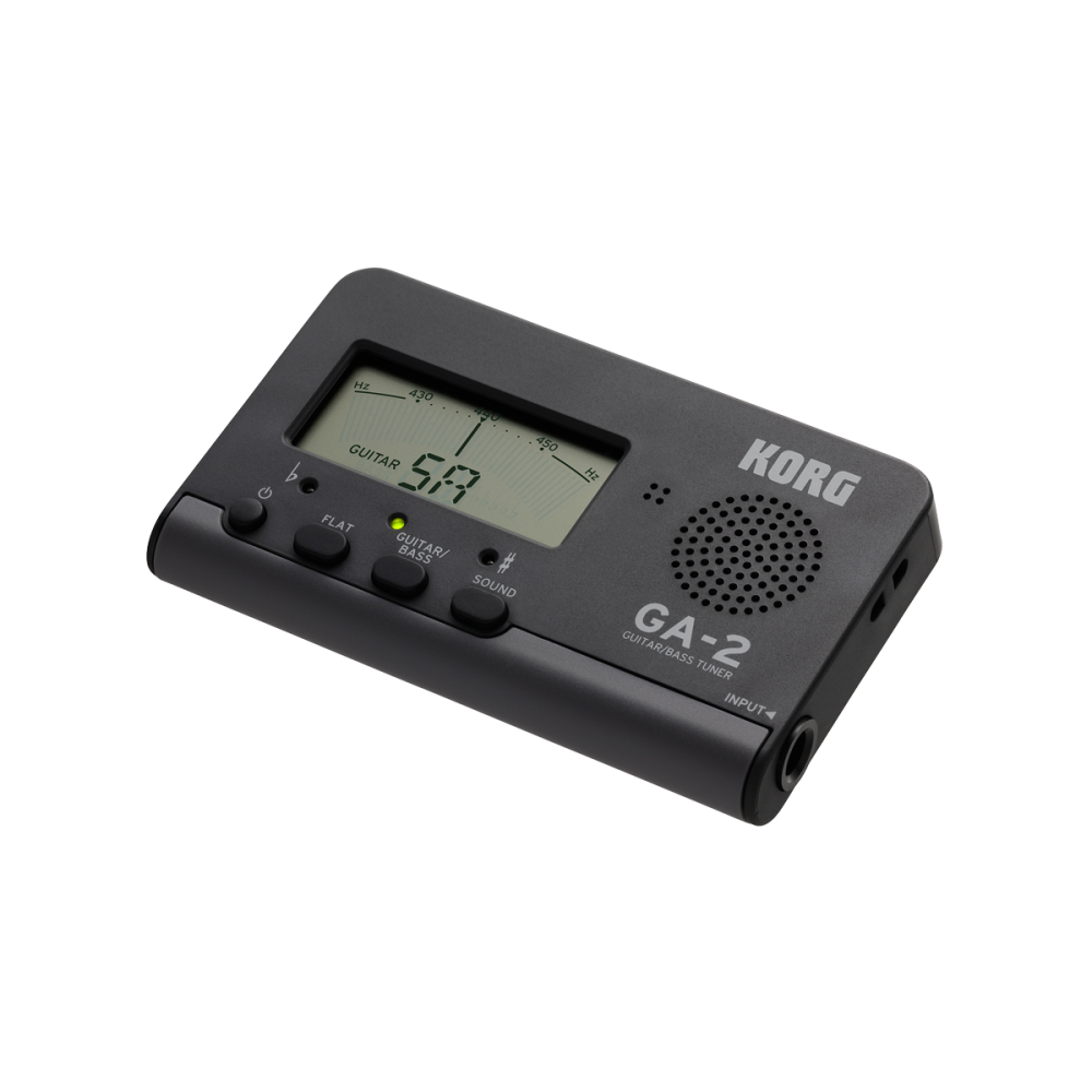 El Korg GA-2 es un afinador compacto y portátil diseñado para guitarras y bajos. Con una pantalla LCD de alta visibilidad, permite una afinación precisa incluso en entornos oscuros. Es compatible con guitarras de 7 cuerdas y bajos de 6 cuerdas, ofreciendo modos de afinación estándar y afinaciones bajas (hasta 5 semitonos). Incluye un modo de calibración ajustable y un modo de referencia sonora, ideal para músicos que buscan precisión y durabilidad, con una duración de batería de hasta 200 horas.
