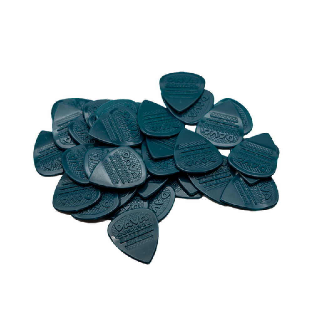 Bolsa de 36 púas Dava Control Nylon. Estas púas de nylon cuentan con una punta afilada y empuñadura de goma para mayor control y precisión en las ejecuciones de las piezas.
