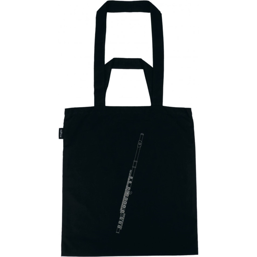 Bolsa con asa color negro adornada con dibujo de flauta travesera. Esta bolsa multiusos es perfecta tanto para llevar tus partituras como incluso tu atril. 40x37 cms