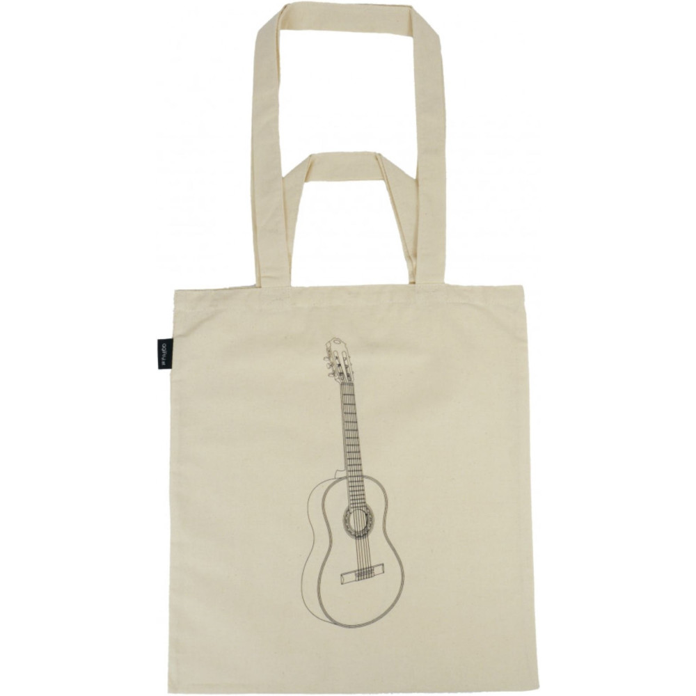 Bolsa con asa color natural adornada con dibujo de guitarra. Esta bolsa multiusos es perfecta tanto para llevar tus partituras como incluso tu atril. 40x37 cms