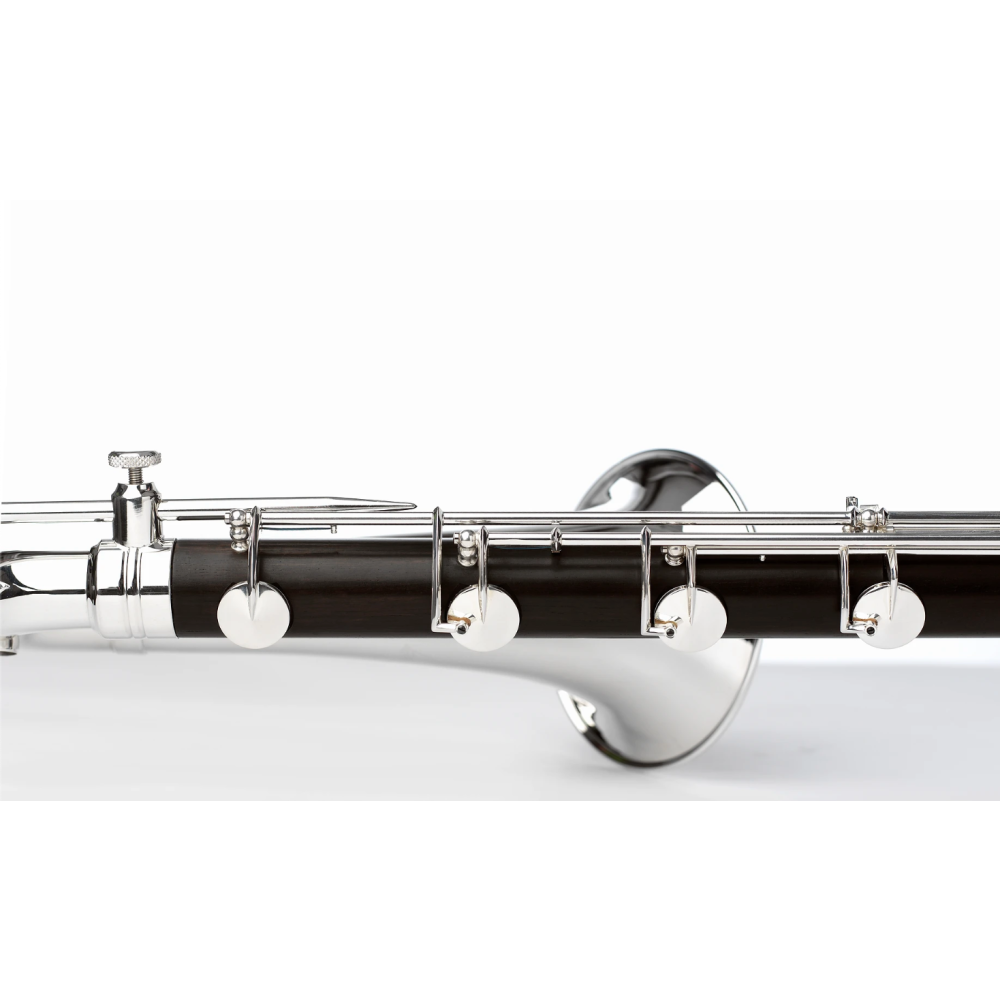 El clarinete bajo Uebel Rêve está construido con madera de granadillo secada y curada naturalmente, y presenta un diseño excepcional para una ejecución precisa. Cuenta con un cuello ajustable, registro hasta Do grave, llaves de resonancia y mecanismos plateados en plata, con un reposapulgar ajustable con anillo para correa. Además, el taladro "Rêve" y el emblema de plata esterlina aportan elegancia y un sonido dulce y proyectado.