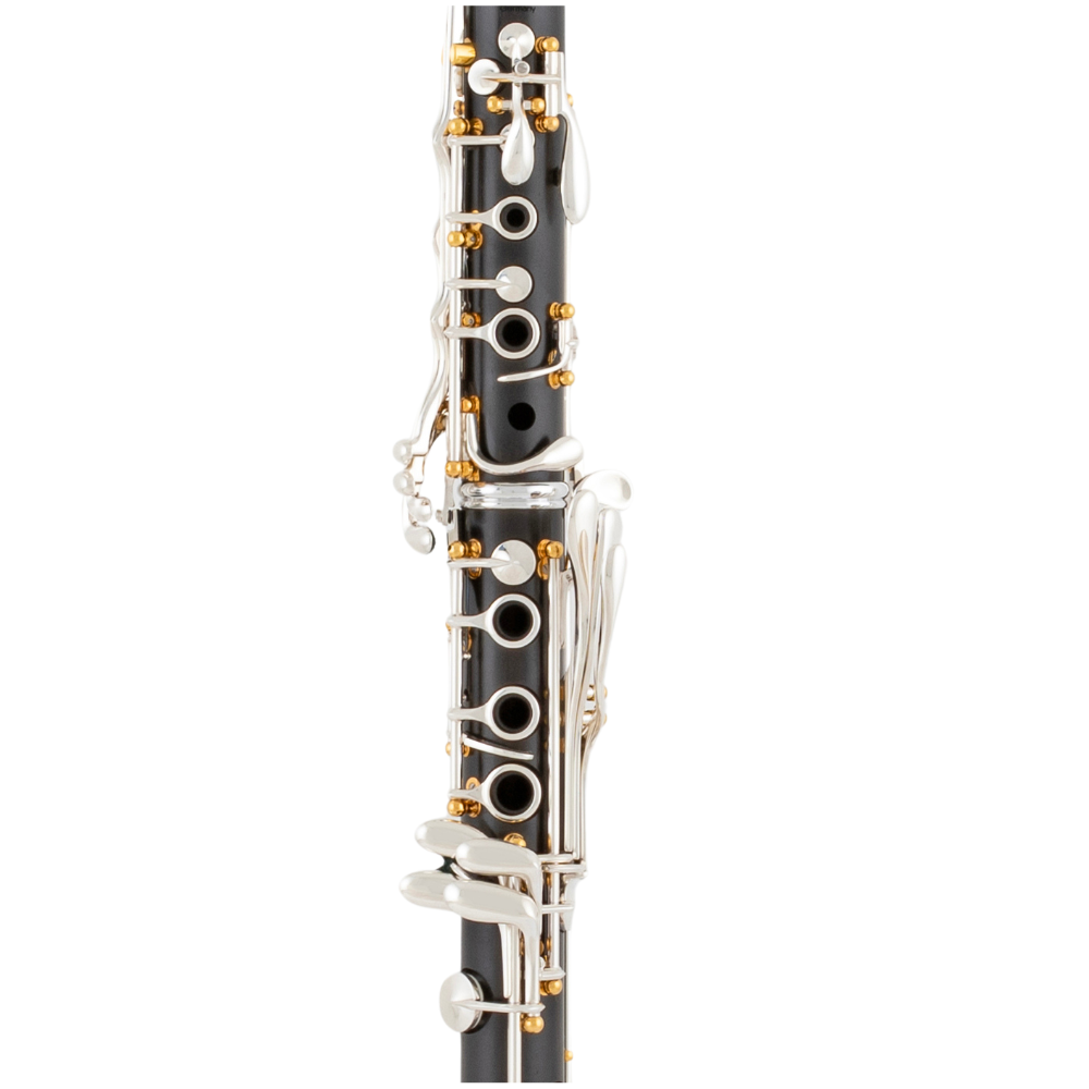El clarinete Uebel Vision en Sib destaca por su combinación de prestaciones técnicas avanzadas y diseño ergonómico, lo que lo convierte en una opción ideal para intérpretes exigentes. Su cuerpo está fabricado en granadilla africana de alta calidad, secada de forma natural durante un proceso de entre siete y diez años. Este tratamiento lento y artesanal asegura una madera estable, resistente y acústicamente rica.