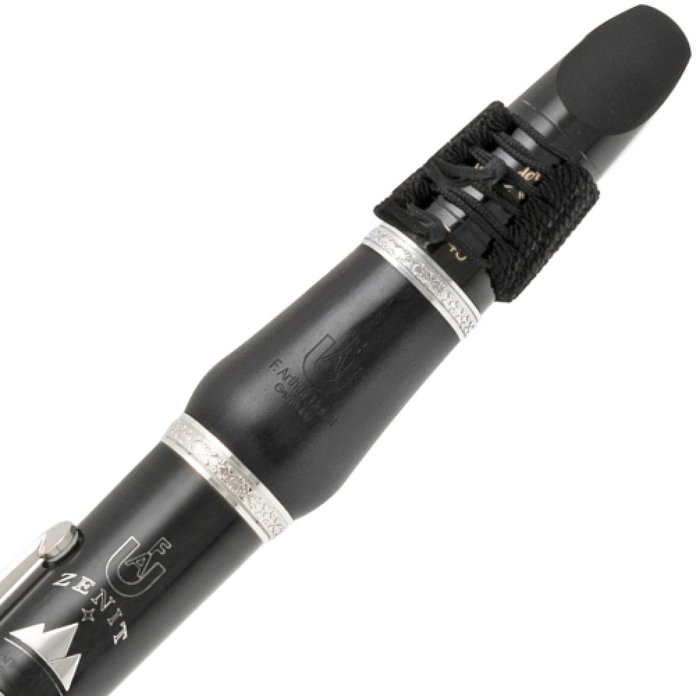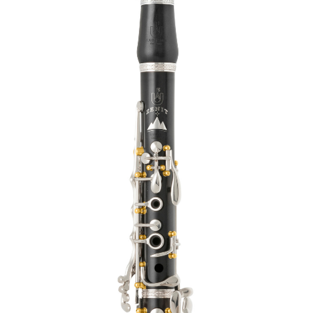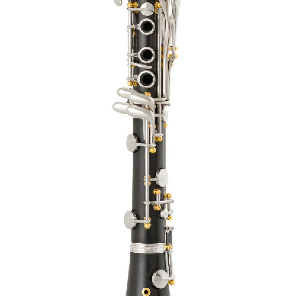 Clarinete Sib fabricado en madera de grenadilla sin tratar, con taladro "Zenit" que optimiza la proyección sonora. Incorpora 20 llaves plateadas con pilares en oro, diseñadas para una digitación fluida y ergonómica.