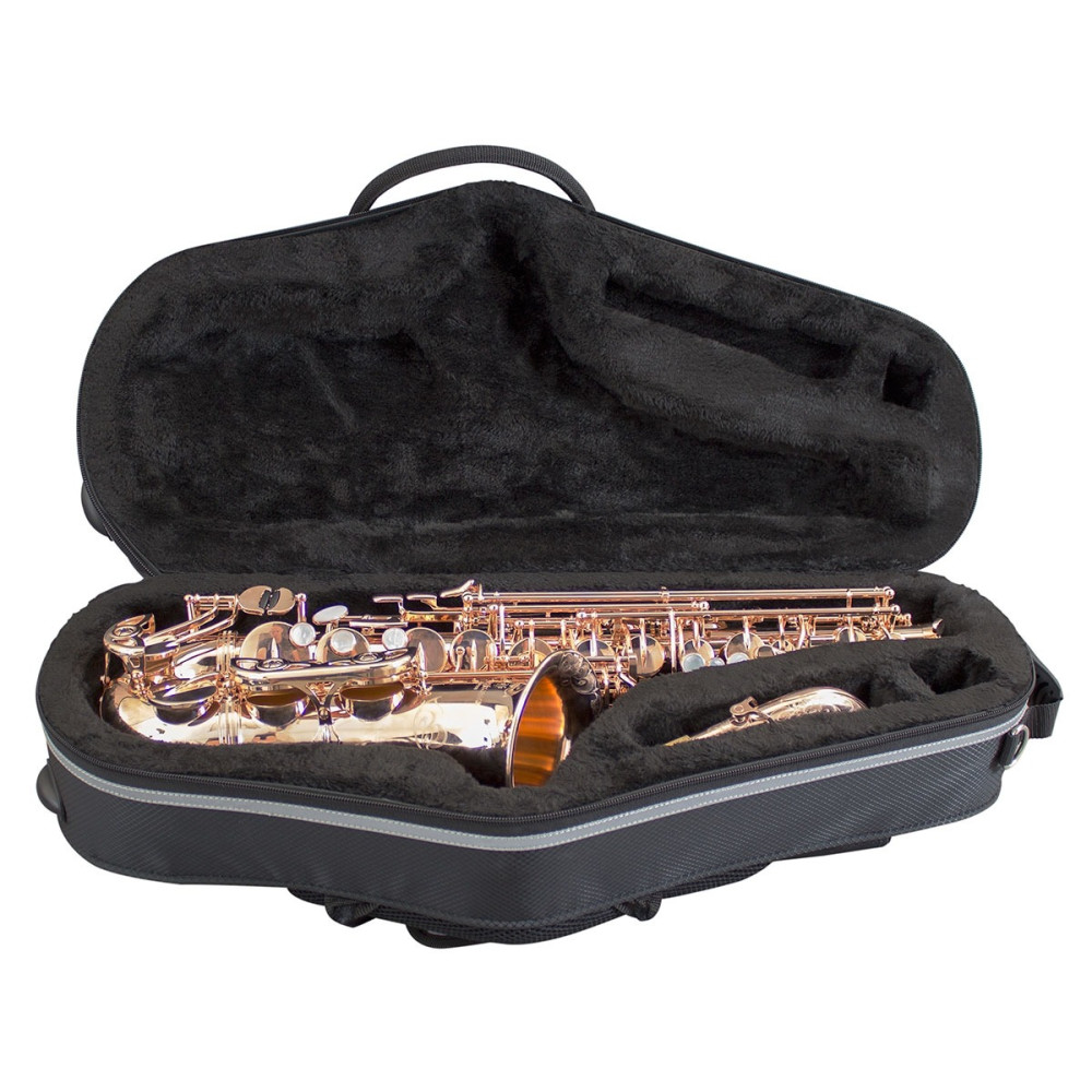 El estuche Champion para saxofón alto, modelo CHCSAXA1, está diseñado para brindar una protección óptima al instrumento. Su construcción ligera pero robusta, junto con una cubierta exterior de cordura resistente al agua, garantiza la seguridad del saxofón en diversas condiciones. El interior de felpa moldeada ofrece un ajuste preciso, protegiendo el instrumento de golpes y arañazos. Además, cuenta con correas traseras acolchadas y ocultables, así como una correa de hombro desmontable, proporcionando múltiples opciones de transporte para la comodidad del músico. Los detalles reflectantes en los bolsillos frontales y las cremalleras aumentan la visibilidad en entornos oscuros, mejorando la seguridad. Los amplios bolsillos exteriores permiten almacenar accesorios adicionales de manera organizada, facilitando el acceso a ellos cuando sea necesario.