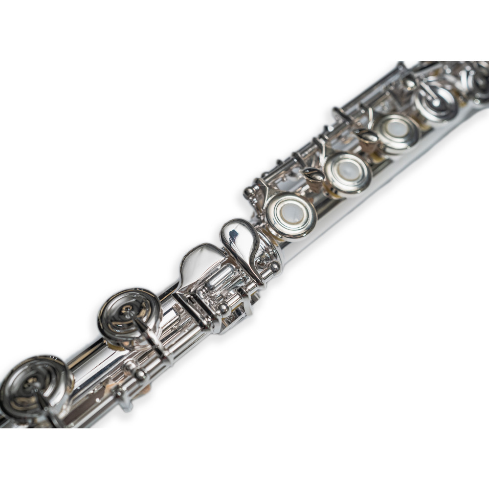 Con tubo de plata de níquel y llaves de cuproníquel, esta flauta combina elegancia y durabilidad. Su diseño desalineados y platos abiertos garantizan una mayor facilidad en la ejecución, mientras que el acabado plateado le da un toque de sofisticación. Ideal para músicos que buscan precisión y estilo en cada nota.