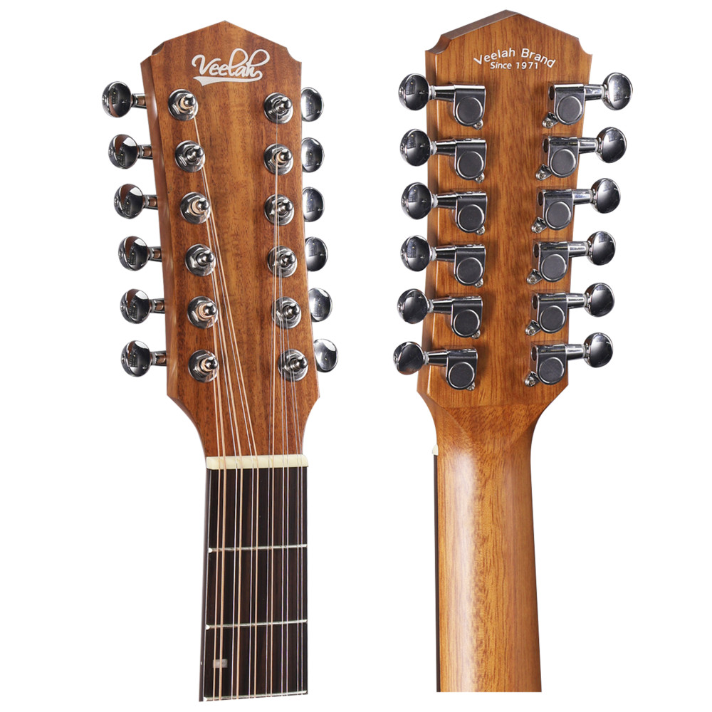 La Guitarra Acústica Veelah VGACE-Koa Cutaway Electrificada de 12 cuerdas es un instrumento diseñado para músicos que buscan un sonido rico y resonante. Su construcción con tapa, fondo y aros de acacia koa proporciona una tonalidad cálida y equilibrada. El mástil de caoba y el diapasón de pau ferro ofrecen una experiencia de interpretación cómoda. El diseño Grand Auditorium con cutaway facilita el acceso a los trastes superiores, y su sistema de electrificación integrado permite amplificar el sonido con claridad en presentaciones en vivo.