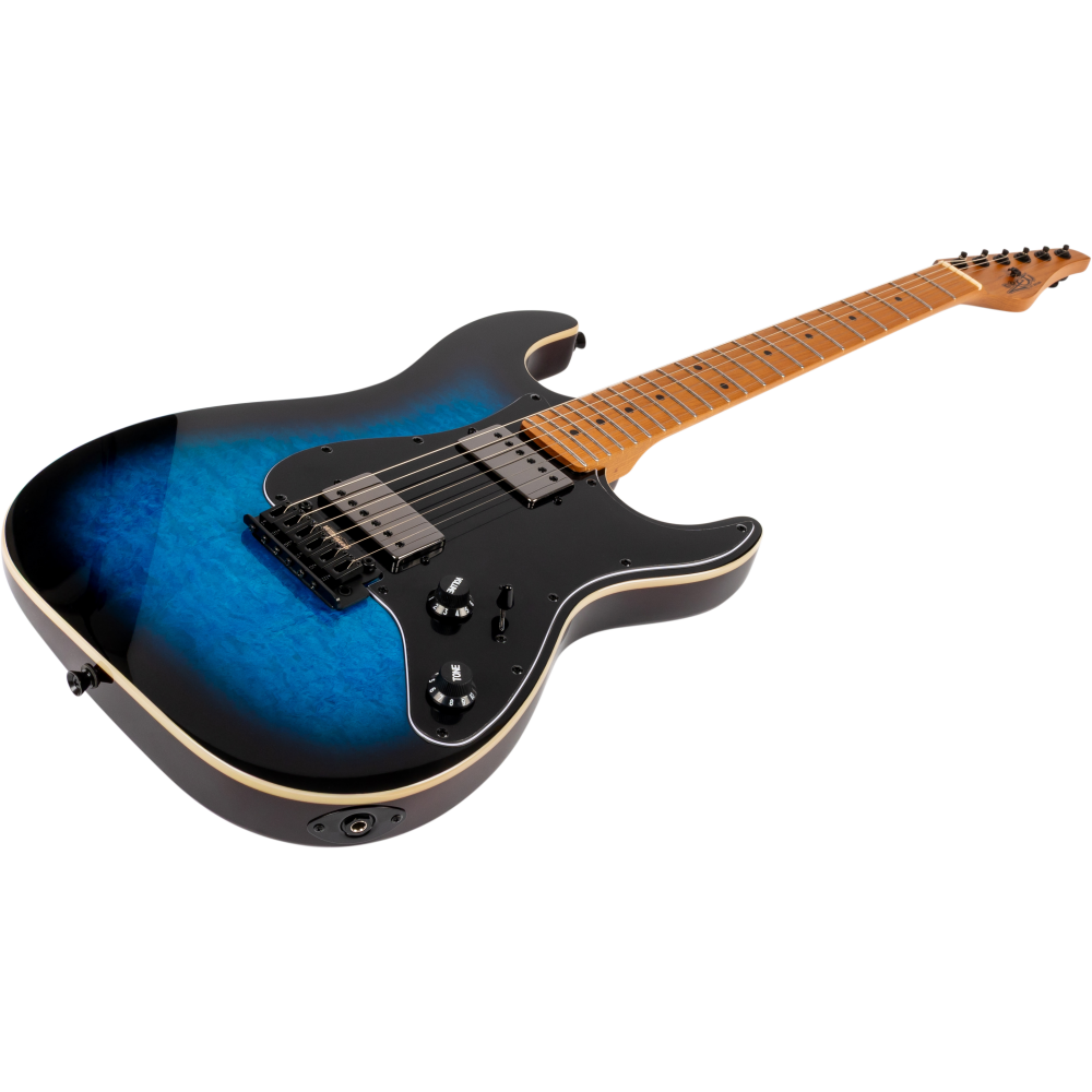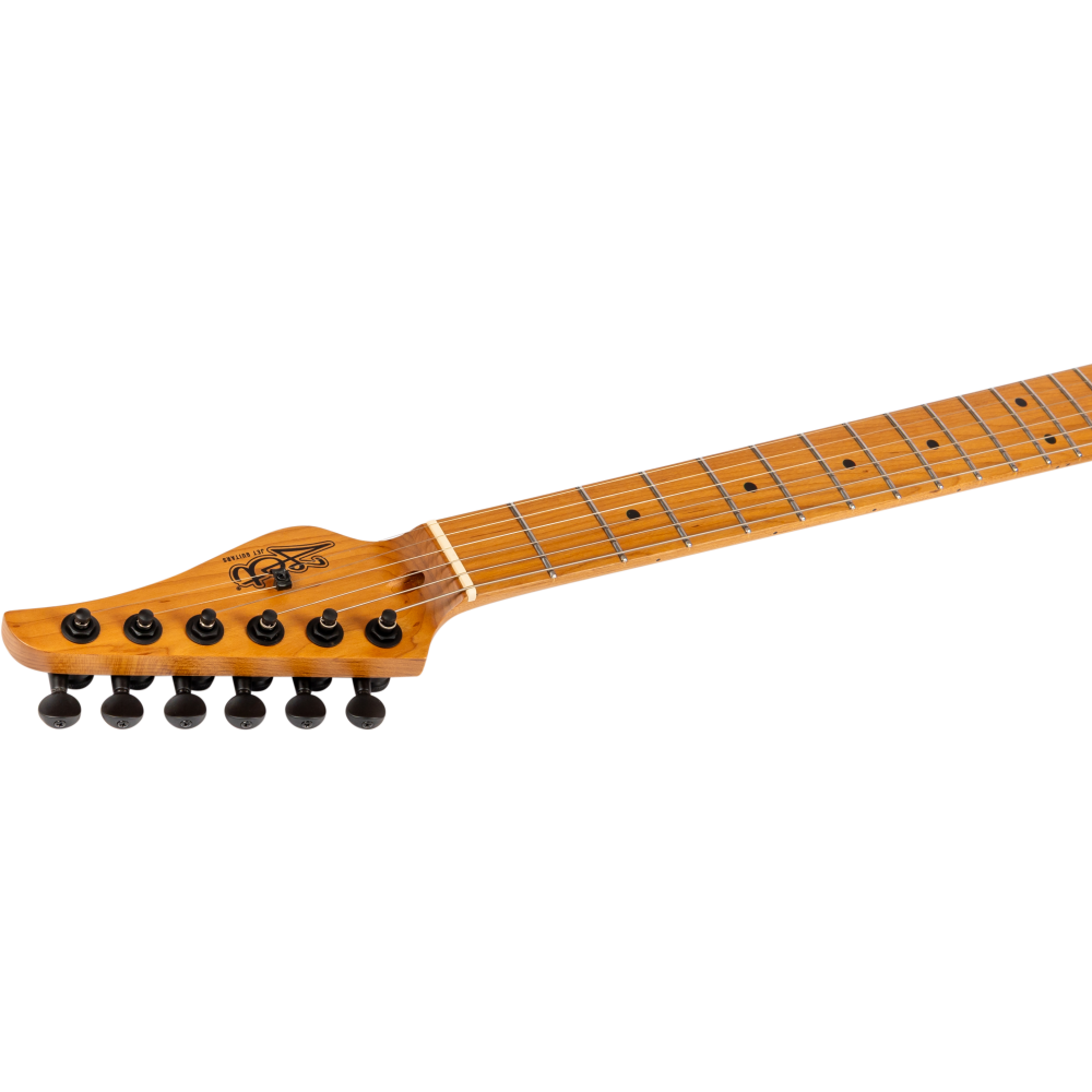 La Jet JS450-BLB Blue Burst destaca por su tapa de arce flameado y cuerpo de álamo tostado, ofreciendo gran profundidad tonal y estilo. El mástil Canadian roasted maple Modern C y diapasón de palisandro aportan resonancia y tacto profesional.