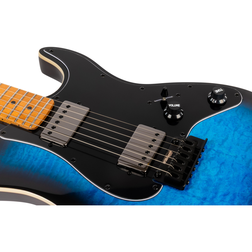 Las pastillas dobles HH y el puente Wilkinson brindan versatilidad para rock, funk, fusión y metal. Su estética y componentes premium aseguran presencia en escenario, respuesta dinámica y estabilidad de afinación.