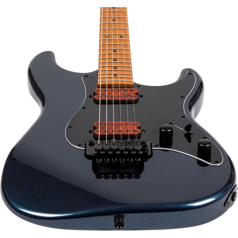 La serie 800 de Jet Guitars destaca por su relación calidad-precio excepcional, ofreciendo especificaciones de nivel profesional en un instrumento accesible. El acabado Deep Blue no solo es visualmente impactante, sino que está aplicado con técnicas que respetan la resonancia natural de la madera. Cada detalle, desde la madera de arce tostado hasta las pastillas con cubiertas de madera personalizadas, refleja el compromiso de Jet Guitars con la calidad y la innovación.