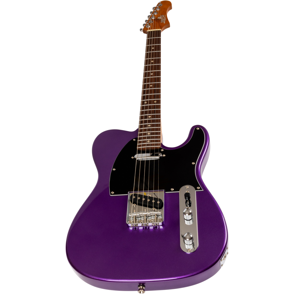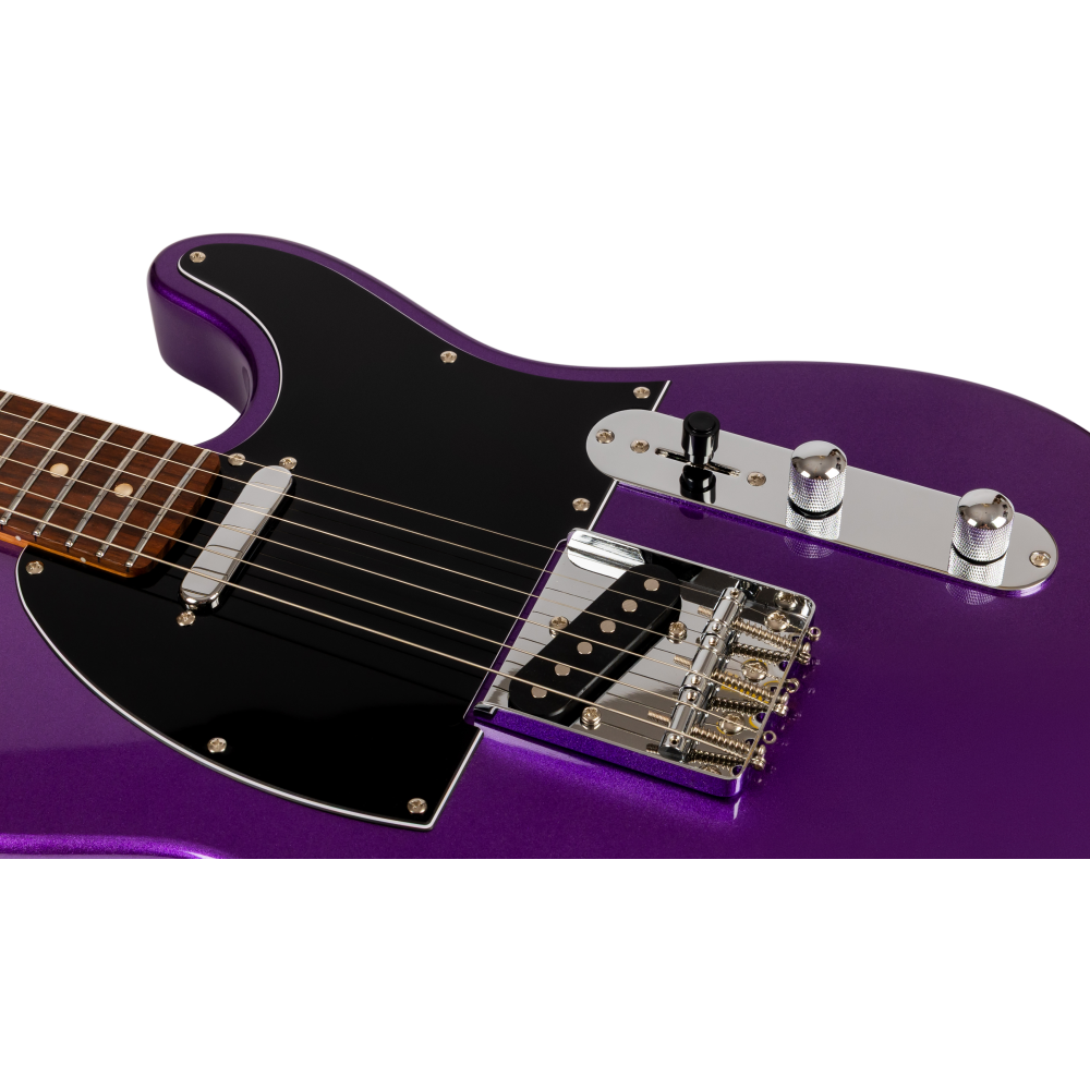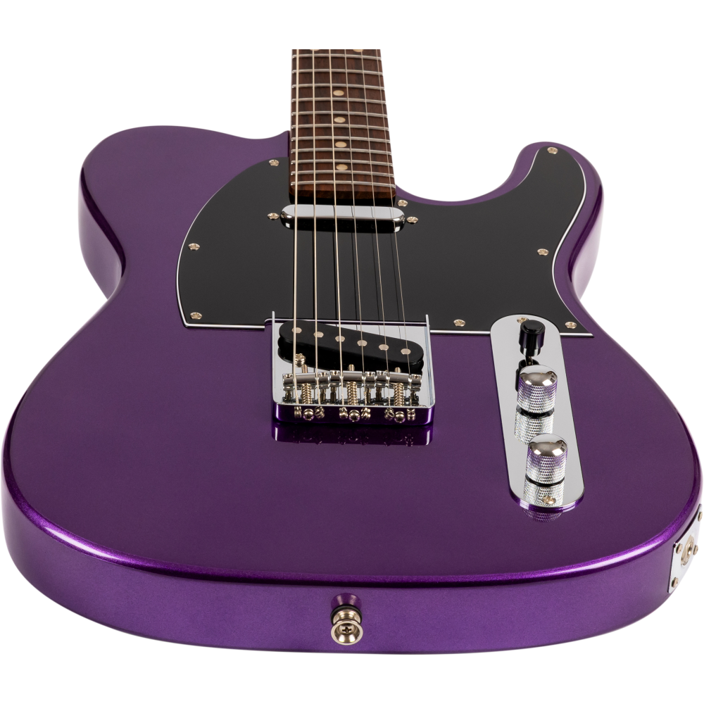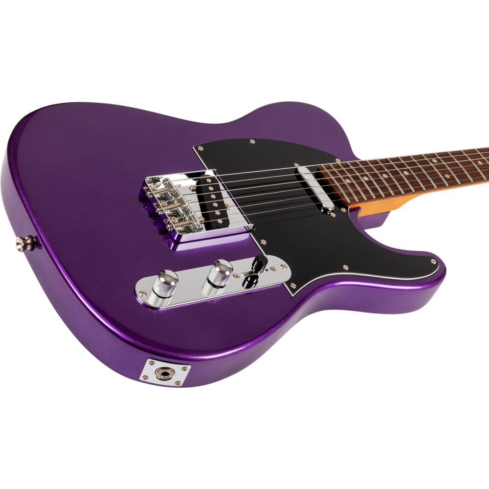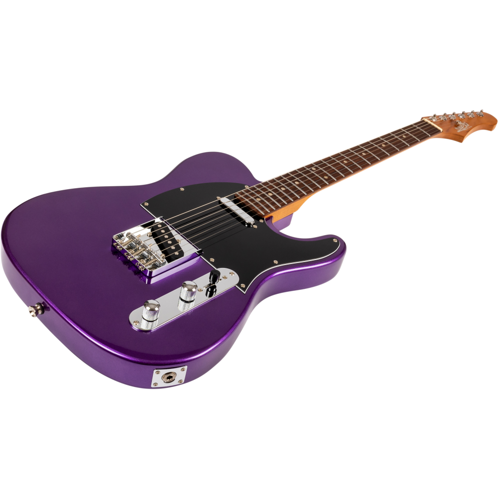 La guitarra tipo Telecaster Jet JT-300 PLM R combina un diseño clásico de doble pastilla simple con un acabado Plum moderno y llamativo. Su mástil de arce canadiense tostado y diapasón de palisandro ofrecen comodidad y tono equilibrado para todo tipo de estilos.