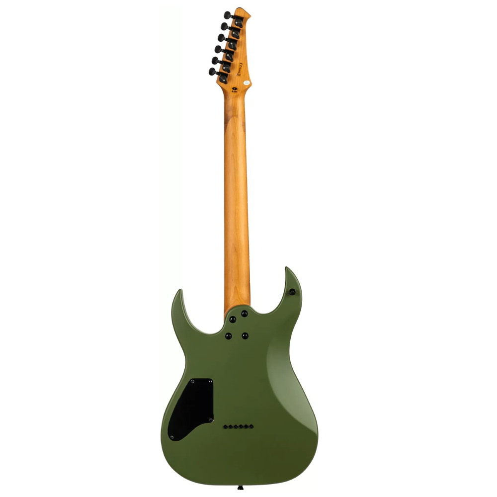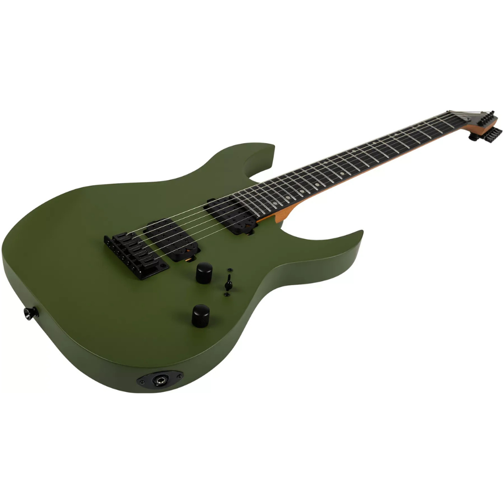 Con un diapasón de ébano, 24 trastes medium jumbo y una escala de 25.5”, esta guitarra proporciona una ejecución rápida, fluida y precisa. Tiene un set de pastillas humbucker Spira Villain con imanes cerámicos y una salida de 12k, ideales para tonos definidos y potentes incluso con altos niveles de ganancia. Su acabado en verde satinado y clavijero con bloqueo completan un instrumento versátil, ideal tanto para el escenario como el estudio.
