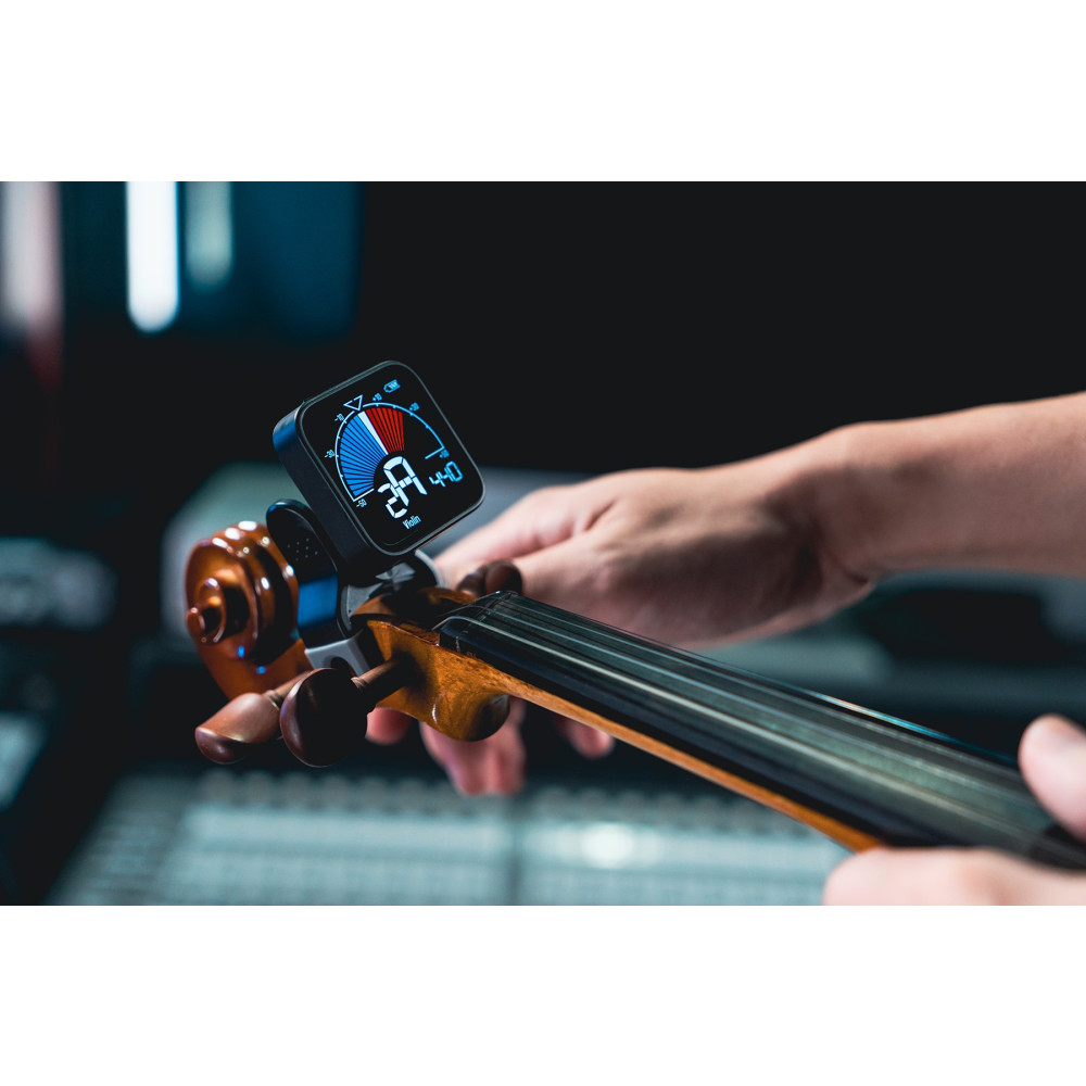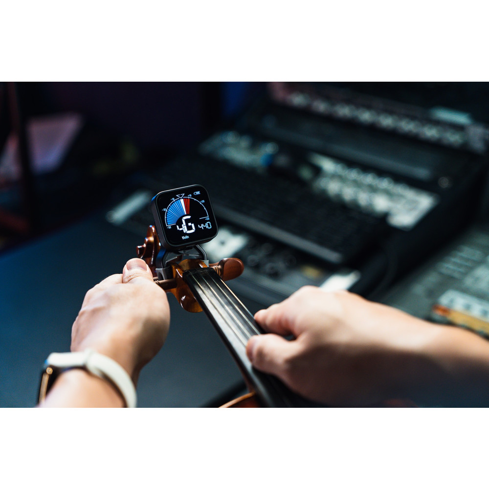 Incluye afinador, metrónomo y generador de tonos en un solo dispositivo, eliminando la necesidad de llevar varios accesorios. Su pantalla en color de gran tamaño asegura una lectura clara en cualquier entorno, mientras que la batería recargable por USB-C ofrece practicidad y largas horas de funcionamiento. La función de tap tempo permite ajustar el ritmo de forma intuitiva e inmediata.