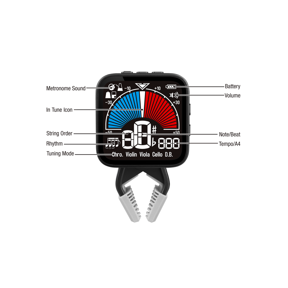El Cherub WMT-665V es un afinador-metrónomo especialmente diseñado para instrumentos de la familia del violín, combinando funcionalidad 3 en 1, facilidad de uso y una pantalla a todo color para máxima visibilidad. Gracias a su pinza optimizada, se adapta perfectamente a violines, violas y otros instrumentos similares, garantizando una sujeción firme sin dañar el instrumento.