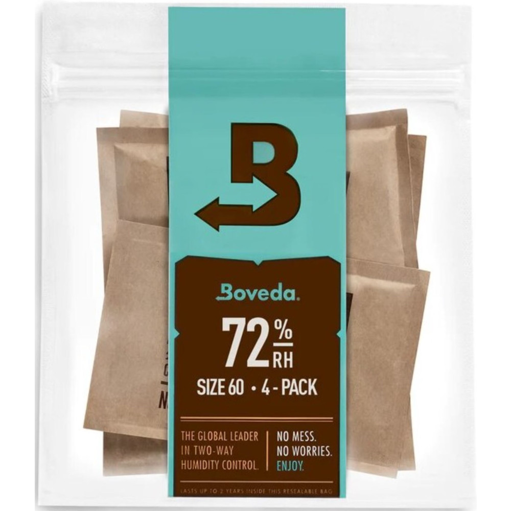 El Pack-4 Boveda MB72-60-4P incluye cuatro sobres humidificadores Size 60 con una humedad relativa constante del 72% RH, diseñados para proteger instrumentos musicales de madera, como guitarras acústicas, eléctricas y otros de cuerda o viento madera. Gracias a su tecnología bidireccional, Boveda regula automáticamente la humedad dentro del estuche, absorbiendo o liberando vapor de agua para mantener condiciones estables y seguras sin necesidad de mantenimiento.