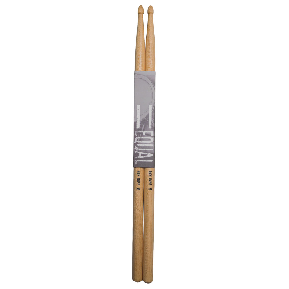 Par de baquetas Equal construidas con madera de arce seleccionada, ofreciendo una combinación de ligereza, resistencia y respuesta rápida. Su superficie pulida permite un agarre cómodo y firme, reduciendo el deslizamiento durante la ejecución.