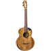 Ukelele barítono electroacústico con cuerpo completamente sólido de mango, que proporciona un sonido cálido, dulce y resonante. Su diseño incluye corte scalloped, binding y roseta de arce teñido, y orificio lateral para proyección directa al intérprete.