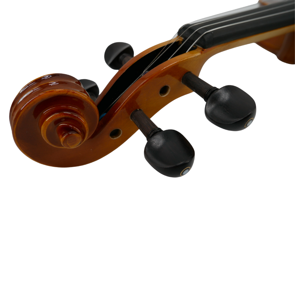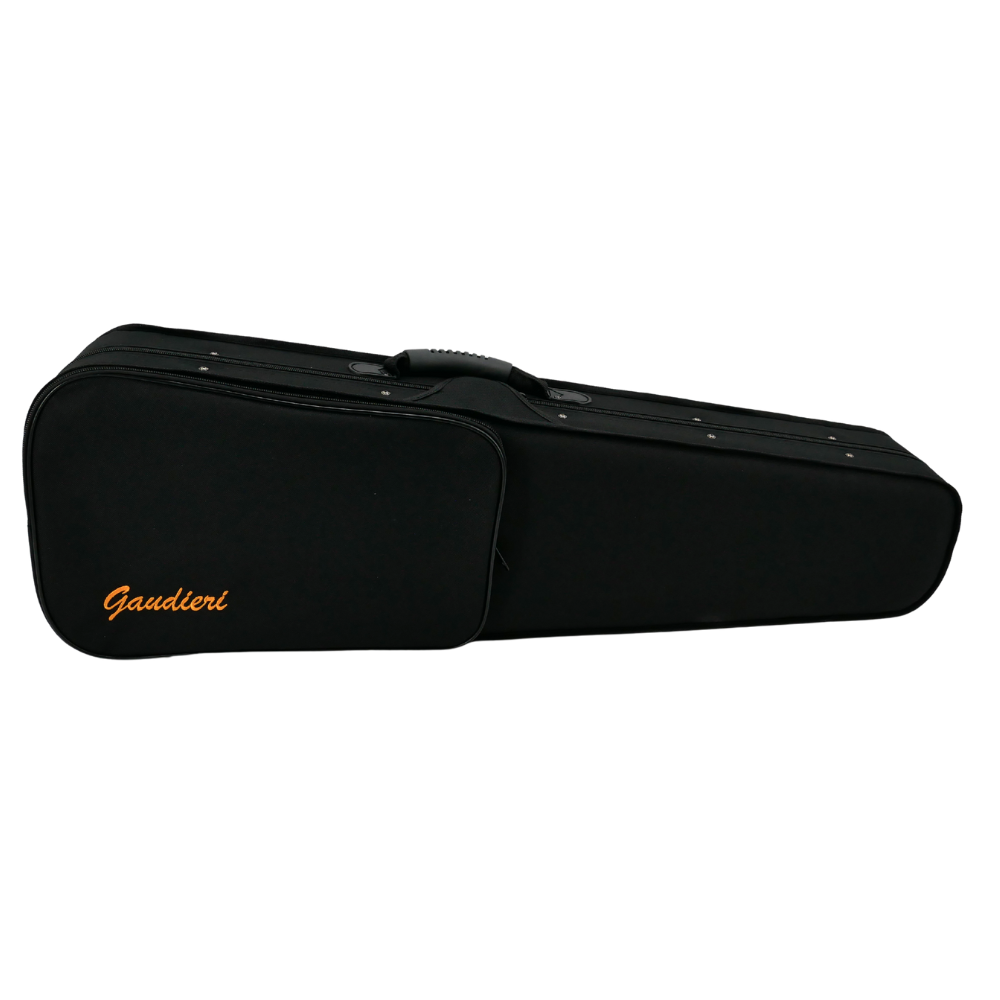 El violín Gaudieri HD-V21 en tamaño 4/4 está fabricado con tapa de abeto macizo y aros y fondo de arce, lo que proporciona una excelente proyección sonora y resistencia estructural. Sus accesorios en madera de jojoba teñida de negro aportan durabilidad y estabilidad, mientras que el cordal de fibra de carbono mejora la respuesta acústica con menor peso.